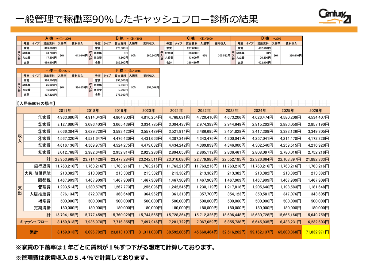 シミュレーションに際しては、A棟で行なった借上げ賃料の下落率を参考にしました。